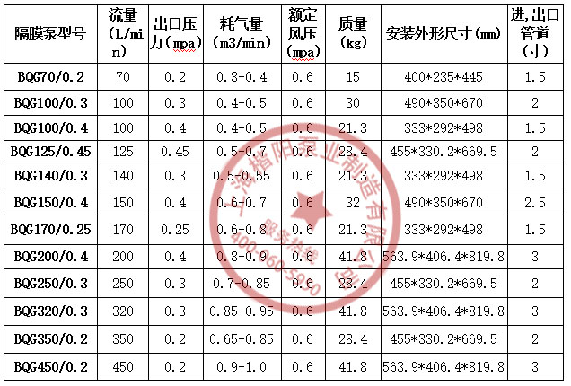 礦用氣動BQG-100/0.4隔膜泵性能參數