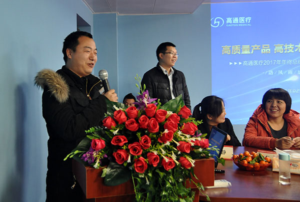 接下來上臺的是公司總經(jīng)理王明莉女士,她總結(jié)了這一年來,高通醫(yī)療的總體工作,并衷心感謝每一位高通醫(yī)療人的辛勤付出,是他們的努力贏得了公司更大的進(jìn)步。同時,也相信憑借高通醫(yī)療人的智慧與創(chuàng)造力,一定會在2018年助力公司取得更輝煌的發(fā)展,共同打造一個更強大更美好的高通醫(yī)療。