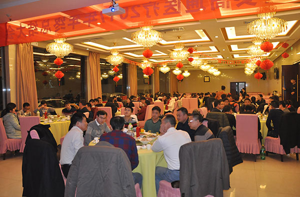 晚上聚餐開始了,董事長和總經(jīng)理為員工敬酒。美酒、美食傳遞美好的祝愿。